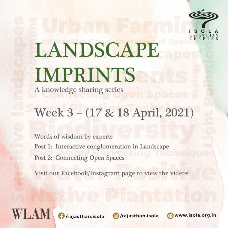 ISOLA Rajasthan & Gujarat Chapter are jointly organizing a weekly online forum to present the work and experience of Landscape Architects from across the country. Inviting Professionals and students from across the country.